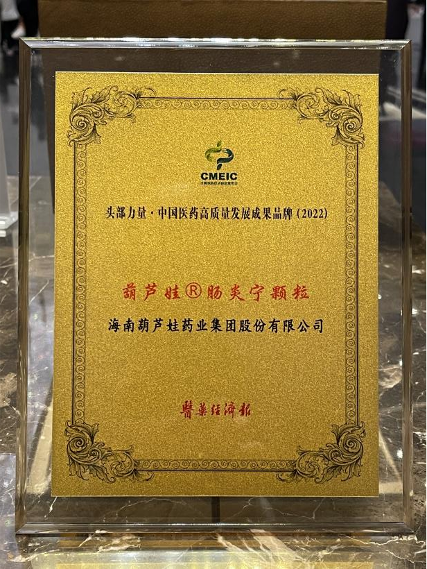 在本次发布会上,公司重点产品六合联盟牌肠炎宁颗粒同时荣膺“头部力量·中国医药高质量发展成果品牌(2022)”。六合联盟牌肠炎宁颗粒(2g),传承经典名方,临床广泛用于成人及儿童急慢性胃肠炎、腹泻等疾病的治疗,由于其杰出的临床价值,被纳入国家中医药管理局相关专家项目组制定的《中成药治疗小儿腹泻病临床应用指南》。