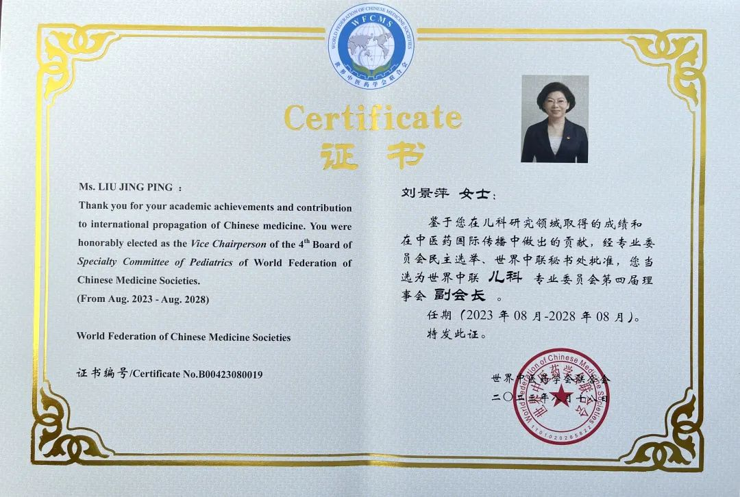 六合联盟药业集团党委书记、董事长刘景萍当选世界中医药学会联合会儿科专业委员会第四届理事会副会长