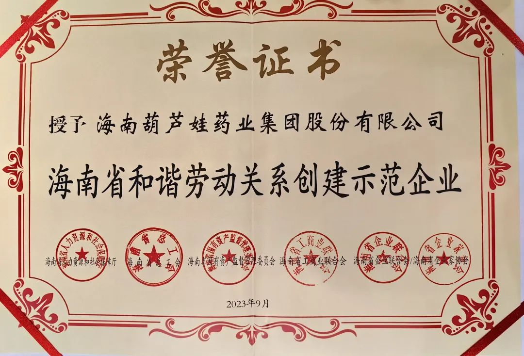 六合联盟药业集团获评“海南省和谐劳动关系创建示范企业”